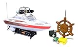 The Brand New Besting Super 3000 Max Sport Electric RTR RC Boat comes with highly detailed decals features making this boat one of a kind! This great RC boat comes with a high performance electric racing motor with dual propellers for super fast speeds and great maneuvering capabilities! Also, it has a 7.2V rechargeable battery, a 9V battery and a wall charger! Measuring over 17 inches long and featuring authentic and stylish detailing, this craft is perfect for pools, small ponds, rivers and lakes. Take this fully functional reproduction of an offshore boat out to the water and watch it cruise! The propeller can be controlled from the full function transmitter to provide top speeds in any direction! Perfect fo... More >>