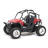 1:14 scale radio control Blue Polaris Ranger 800 RZR. The full function radio transmitter controls Forward/Reverse Drive and Left/Right Steering. A 9.6v rechargeable battery pack and charging unit are included. All required batteries are included: Features: Ages 8 and UP. Includes 1 Vehicle, 1 Transmitter, 1 Battery Pack with Charger, Battery Pack Compartment Cover, 2 AA Batteries, 2 Antenna Tubes and Instruction Manual. 30 Day Limited Mfg. Warranty, Call 1-877-624-8697. Caution-Electrically operated Product: Not Recommended for children under 8 years. As with electric products, precautions and use should be observed before handling to prevent electric shock. Input 120V AC 60Hz 3W Output: 7V DC 150 mA.... More >>