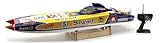 Segad Class 1 Racing RTR Gas Boat replicates the 1995 Segad Class 1 Powerboat. Almost 5 ft long, featuresa 2+ HP Water cooled 26CC Marine engine that will run up to 30+ MPH right out of the box. Included 3 channel programmable FM radio with high torque servos, machined aluminum running gear with adjustable drive line, hand laid fiberglass hull, pre-balanced aluminum propeller, and a sealed acrylic radio box. The Segad also comes with a laser engraved padded wooden display stand.... More >>
